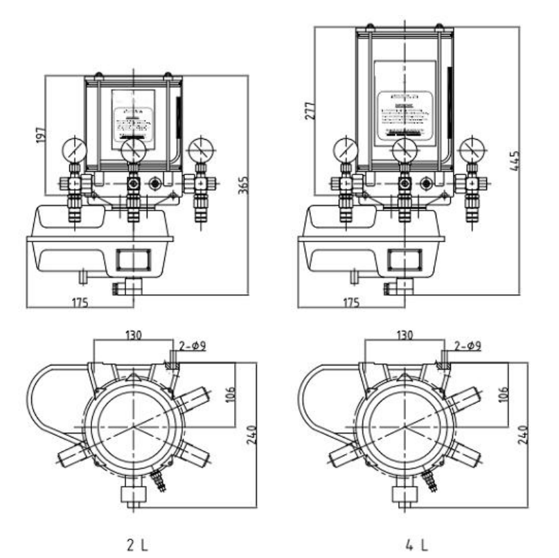 電控裝置一般同被潤滑設備的操作控制器等安裝在一起,也可在被潤滑設備控制系統中加入電控裝置功能,與被潤滑設備結合為一個整體。