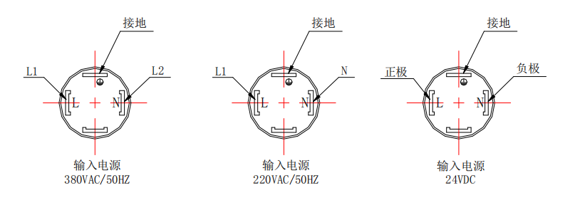 EG 型電動潤滑泵電源接線參照電機接線盒內的示意圖連接。EG 型電動潤滑泵的殼體下方配備有一個 DIN 插座,用于電源輸入,電源接線參照下圖連接: