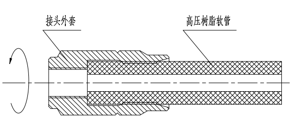 1) 將接頭外套逆時針方向旋轉,套在軟管上,并盡力旋到底。為便于安裝,可先在接頭外套內螺紋或軟管表面涂抹一層油或脂。