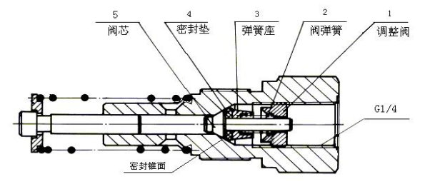 1,依次取出調整座 1、閥彈簧 2、彈簧座 3、密封墊 4、閥芯 5 等零件,用布擦去閥芯