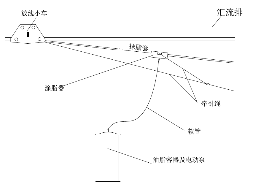 TYX-120型機車高空接觸線自動涂油裝置由高壓電動供脂泵,油脂儲存桶,壓油盤,