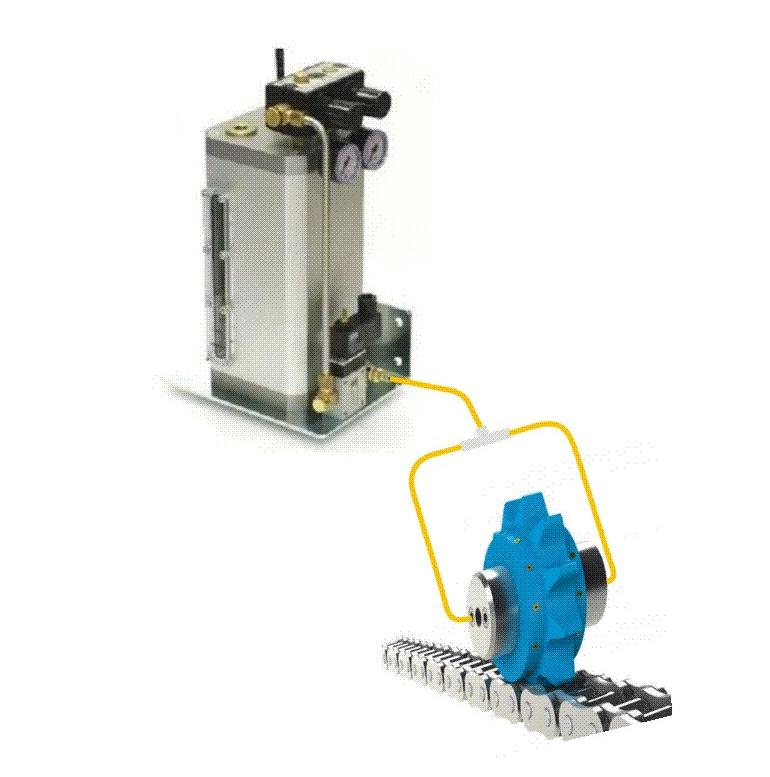 壓力油或者油氣通過(guò)鏈輪的轉(zhuǎn)動(dòng)適量準(zhǔn)確的噴到每一節(jié)鏈銷(xiāo)處,從而完成鏈條的精確潤(rùn)滑。油泵內(nèi)置控制器,控